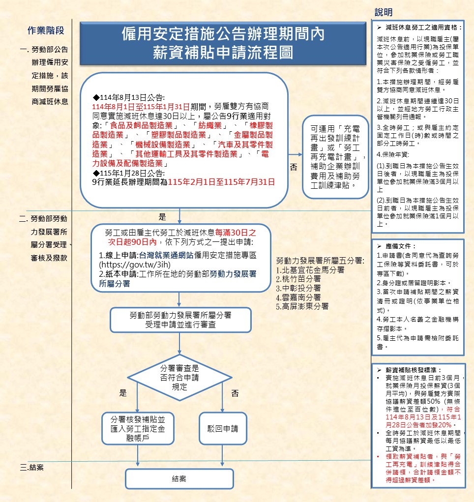 - 線上申請:台灣就業通僱用安定措施線上申辦專區https://gov.tw/3vc