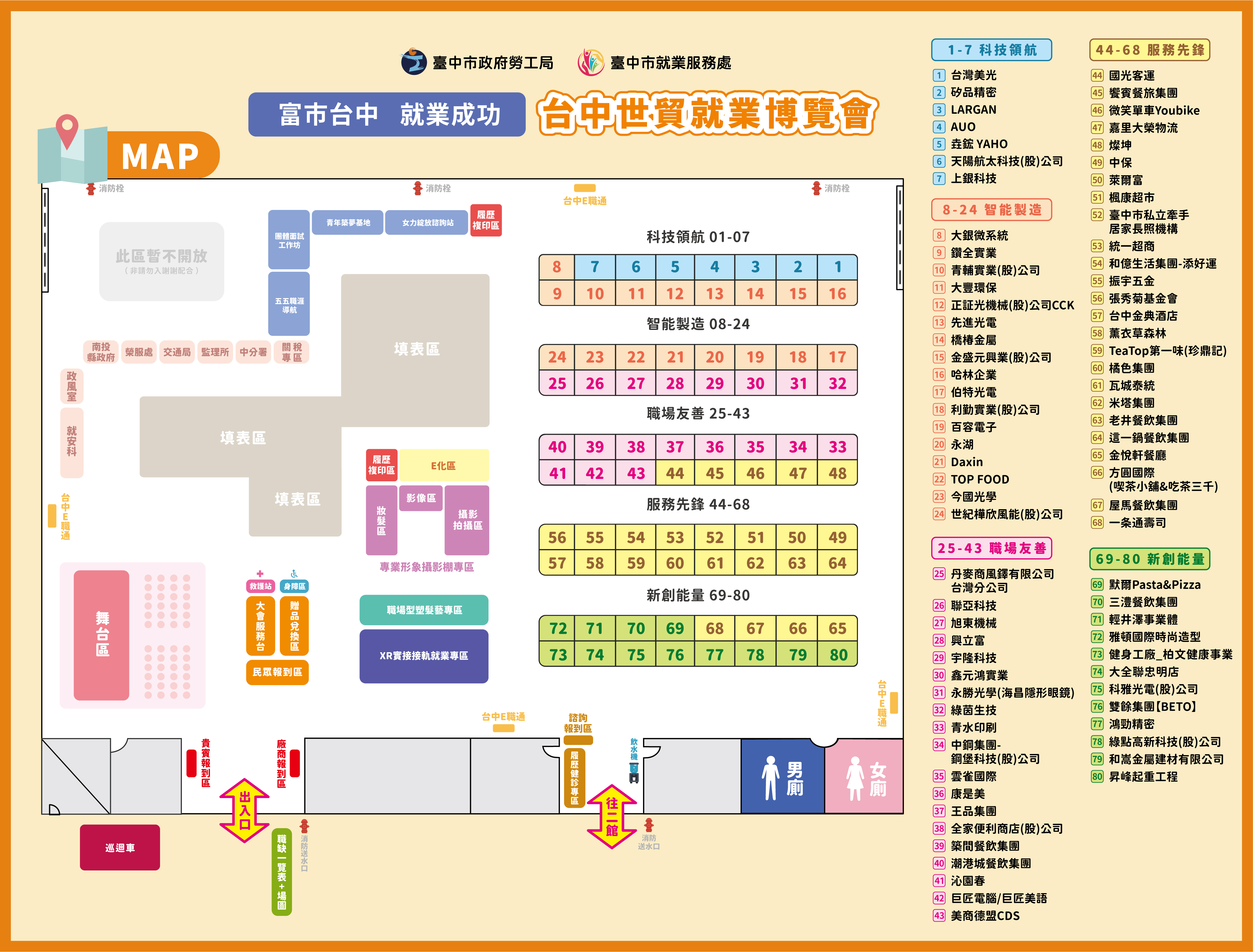 臺中市政府「富市台中 就業成功」台中世貿易就業博覽會場地圖