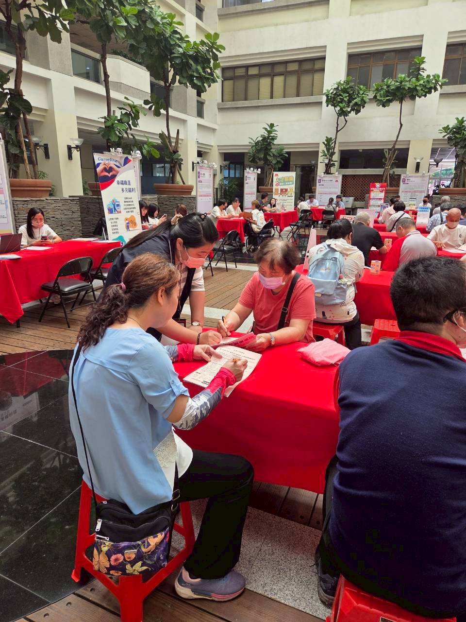 就服處同仁與民眾宣導中高齡就業促進專案及護勞工20大力