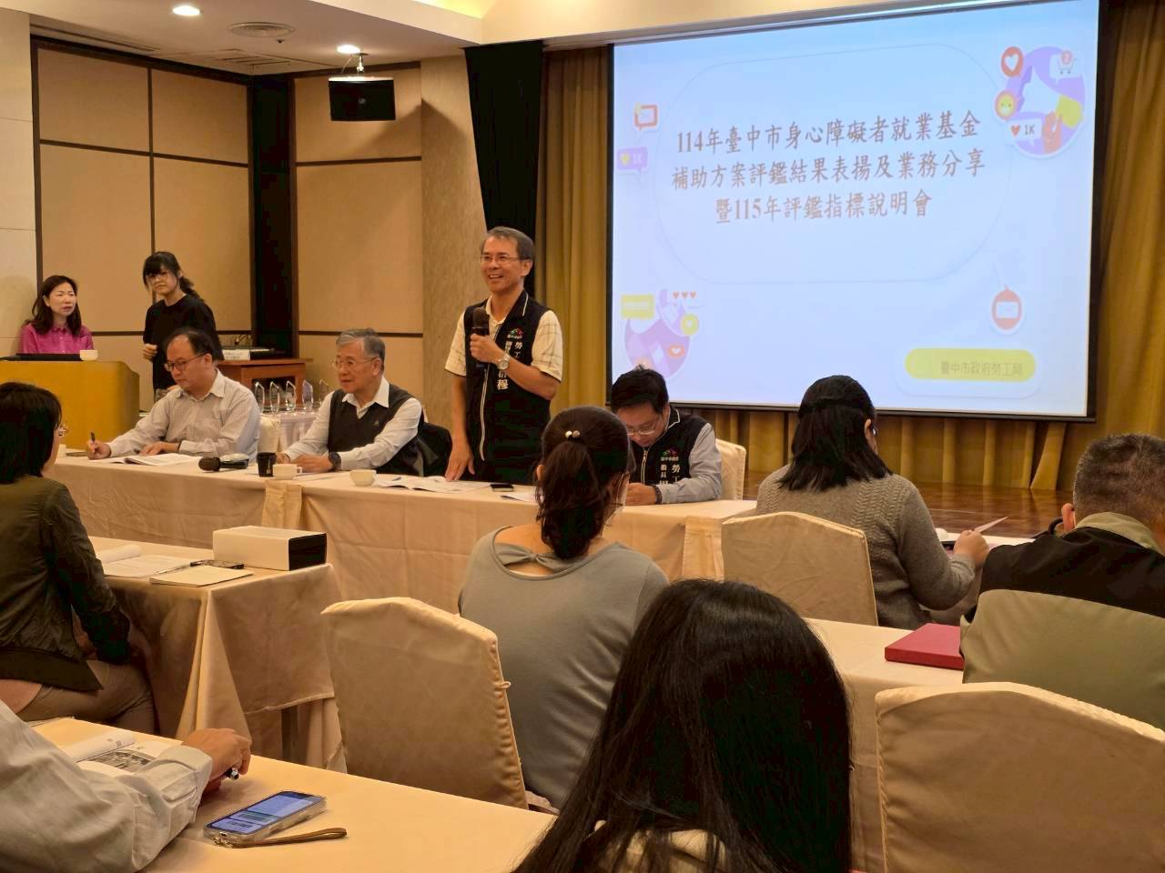 台中市政府勞工局為提升身心障礙者就業服務品質,落實就業平權與職場共融,積極推動身心障礙者職業重建服務及各項就業促進方案,今(28)日於全國大飯店表揚今年度「身心障礙者就業基金補助方案評鑑」優良單位,共有多家推動庇護性就業、支持性就業、職業訓練及職業重建等方案之單位獲獎,表現優異,展現台中市在促進身心障礙者就業上的成果。