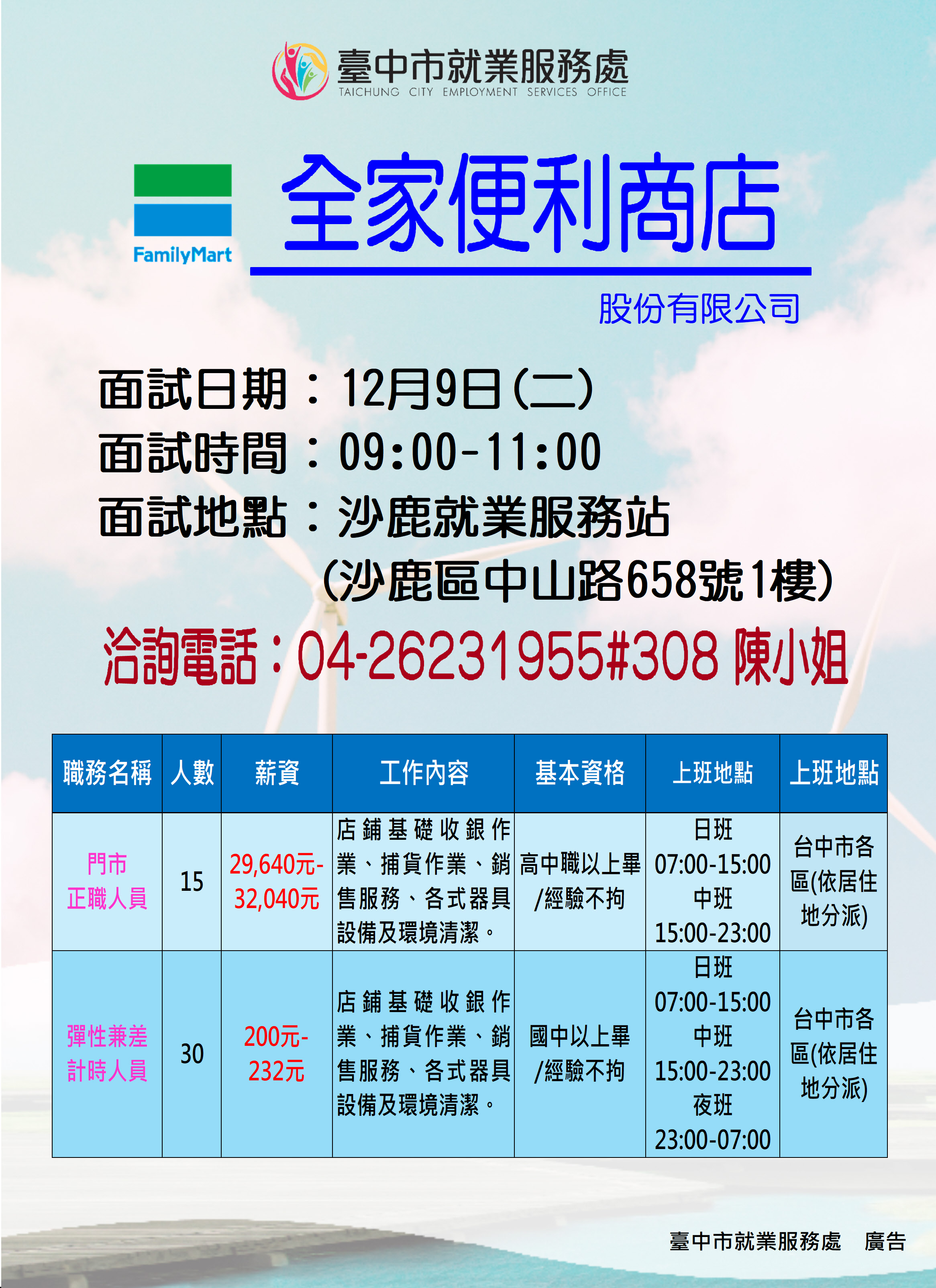 活動地點:沙鹿就業服務站(沙鹿區中山路658號)