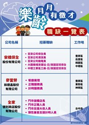 邀請安橋保全、麥當勞及全家便利商店3家企業,提供105個職缺,歡迎求職民眾踴躍參加。