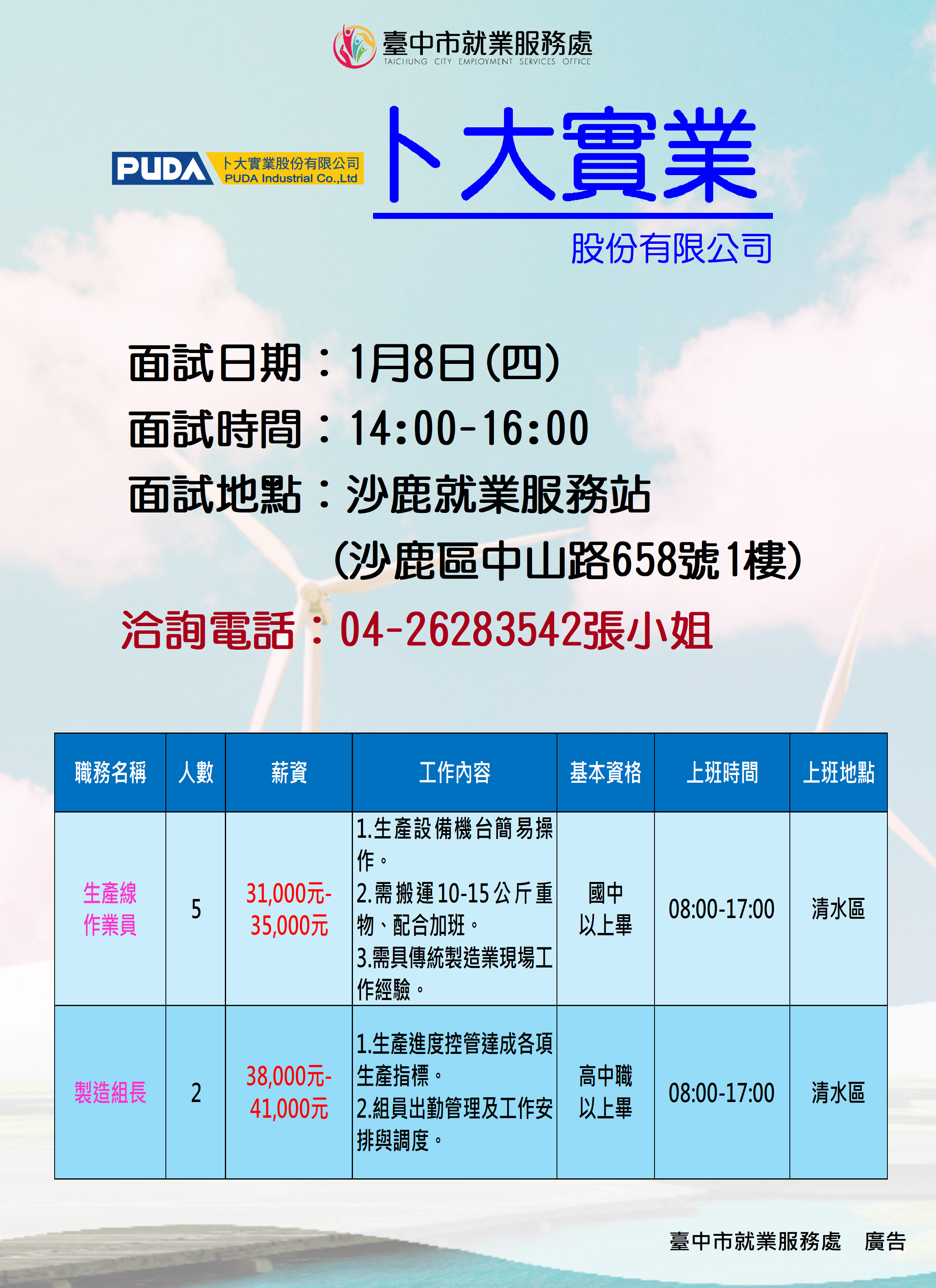 活動地點:沙鹿就業服務站(沙鹿區中山路658號)