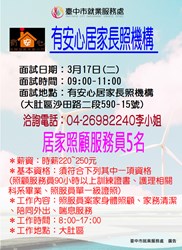 03/17(二)有安心長照服務有限公司臺中市私立有安心居家長照機構單一廠商徵才活動