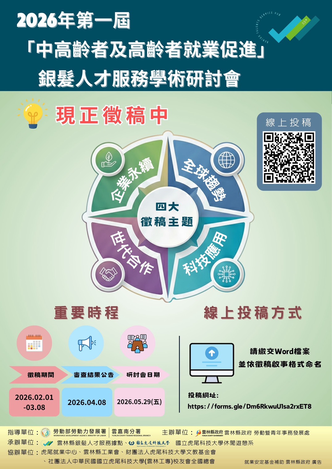 轉知「2026年第一屆中高齡者及高齡者就業促進銀髮人才服務學術研討會」徵稿