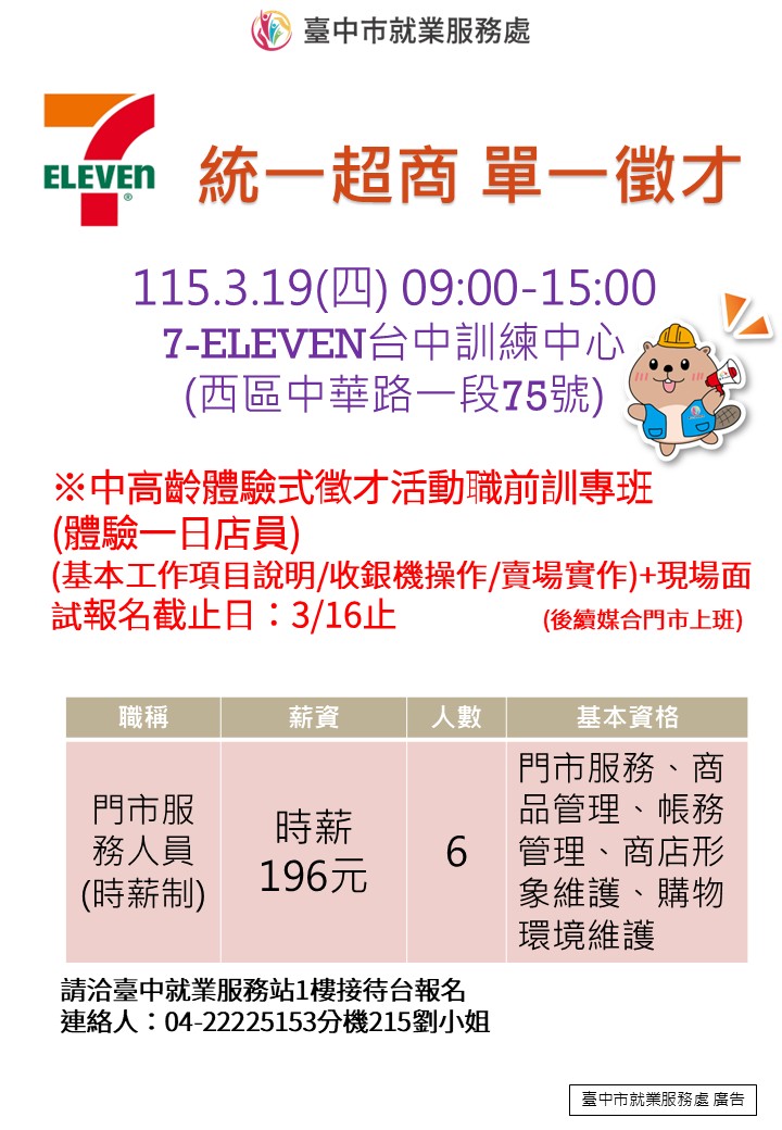 聯絡人:臺中就業服務站