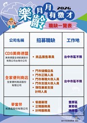 ★詳細職缺資訊請至台灣就業通: https://gov.tw/rP5
