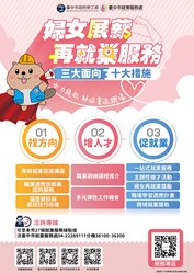 台中市就業服務處補充,若想了解更多婦女就業資訊,歡迎參考「婦女展薪再就業服務專區」(https://gov.tw/MH6),另外也有辦理多場徵才活動,如有需求歡迎至熱門活動專區(https://gov.tw/XJo)。